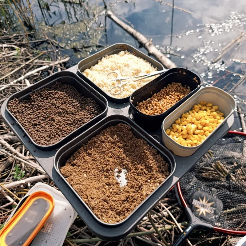 Ich kreuze auch schon mal mit Weizen, Bulgur, Ramen, Reis, Fleischwurst, Maggi, Weißbrot, Haferflocken, Eiern, Jägermeister, Blutwurst, Leber, Frühstücksfleisch, Worcester & Teriyaki Sauce, Cornflakes, körnigem Frischkäse, Hundefutter, Chips, Müsli, Garnelen, Lachsabschnitt, Sprotten, Fischöl und Dingen an meinen Hausgewässern auf, die meiner Oma genau jetzt im Schrank fehlen. Weil ich Friedfischangler bin. Mir wird deshalb fehlende Professionalität nachgesagt, die Ernsthaftigkeit fehle, obwohl ich mich nur austobe, die Entscheidungsfreiheit genieße und Blickwinkel zulasse.